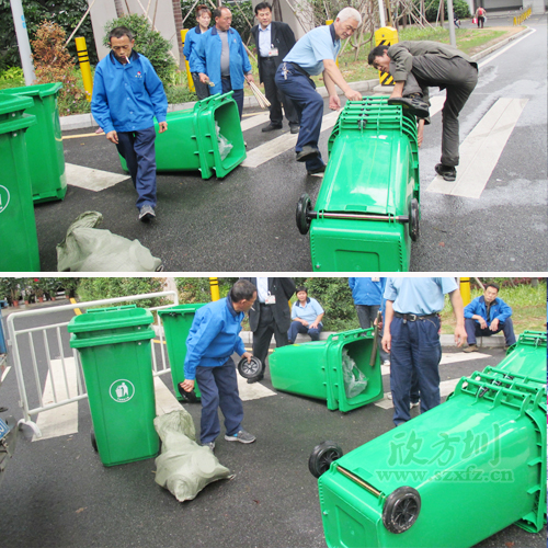工作人員,塑料垃圾桶分配到各個(gè)區(qū)域