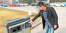 “啪!” 浙江大學(xué)紫金港校區(qū)內(nèi),走出寢室樓的同學(xué)們順手把垃圾袋投入了垃圾房里,有的同學(xué)細心地查看垃圾箱上貼的標(biāo)識,把垃圾分別扔進了“可回...