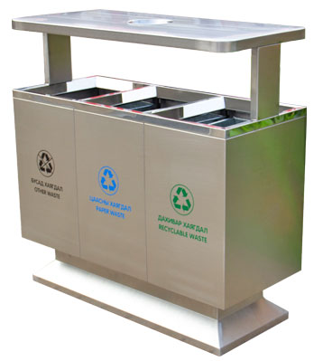 深圳新標(biāo)準(zhǔn)城中村街道社區(qū)不銹鋼五分類垃圾桶由有害垃圾、玻璃、金塑紙(為金屬、塑料、紙張的簡稱)、廚余垃圾、其他垃圾這5分類不銹鋼垃圾桶組合而成。其中金塑紙、其他垃圾日常產(chǎn)生量較大,所以分類收集容器也