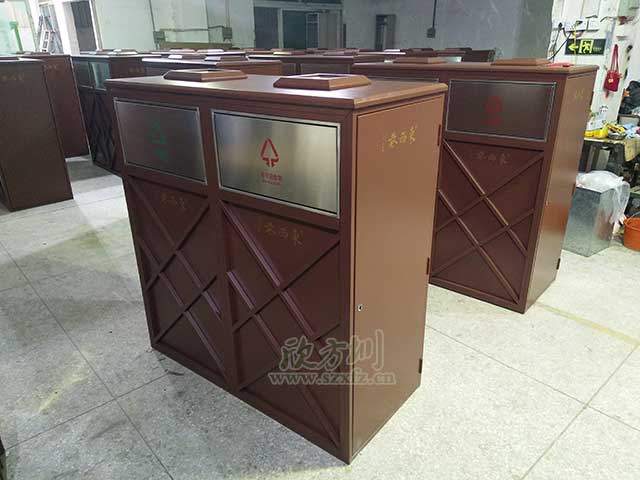 桂林東西巷商業(yè)街鋼制分類垃圾桶工廠批量生產(chǎn)