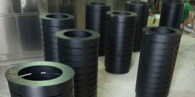 戶外圓形鋼制烤漆垃圾桶桶頭絲印