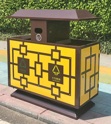 欣方圳戶外仿古典風(fēng)分類垃圾箱細(xì)節(jié)展示