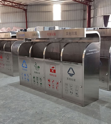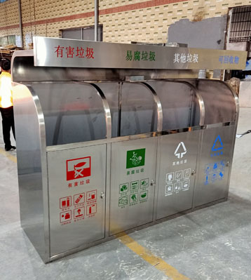 小區(qū)垃圾分類站點(diǎn)四類垃圾分類垃圾桶,不銹鋼無疑是較為理想的材質(zhì)。它戶外防銹蝕效果好,表面金屬光澤高檔美觀,污漬也易清理。不銹鋼分類桶產(chǎn)...
