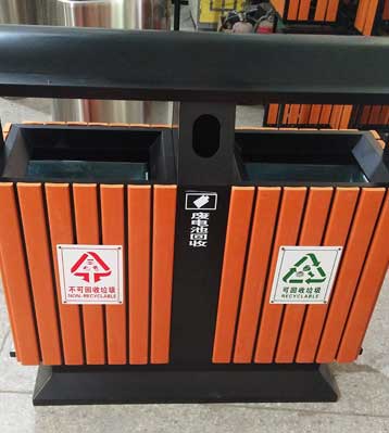 戶外馬路鋼木分類垃圾桶桶頂圖
